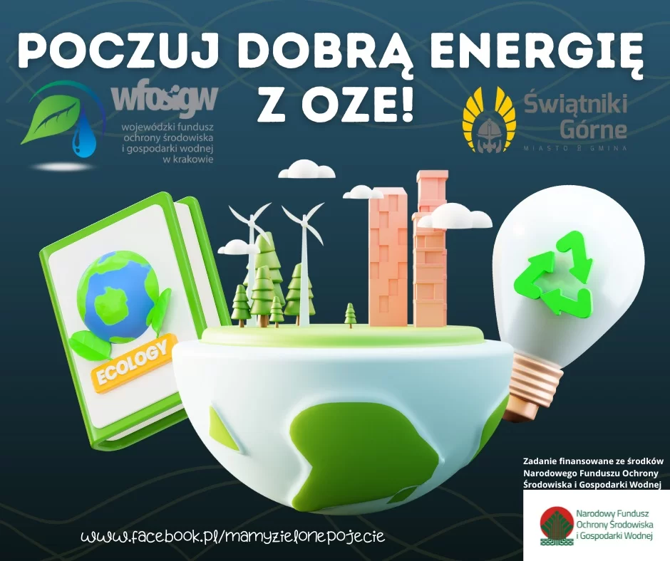 26 maja 2023 r. Gmina Świątniki Górne podpisała umowę z Wojewódzkim Funduszem Ochrony Środowiska i Gospodarki Wodnej w Krakowie na realizację zadania pn. "Poczuj dobrą energię z OZE!" w ramach Programu Regionalnego Wsparcia Edukacji Ekologicznej.