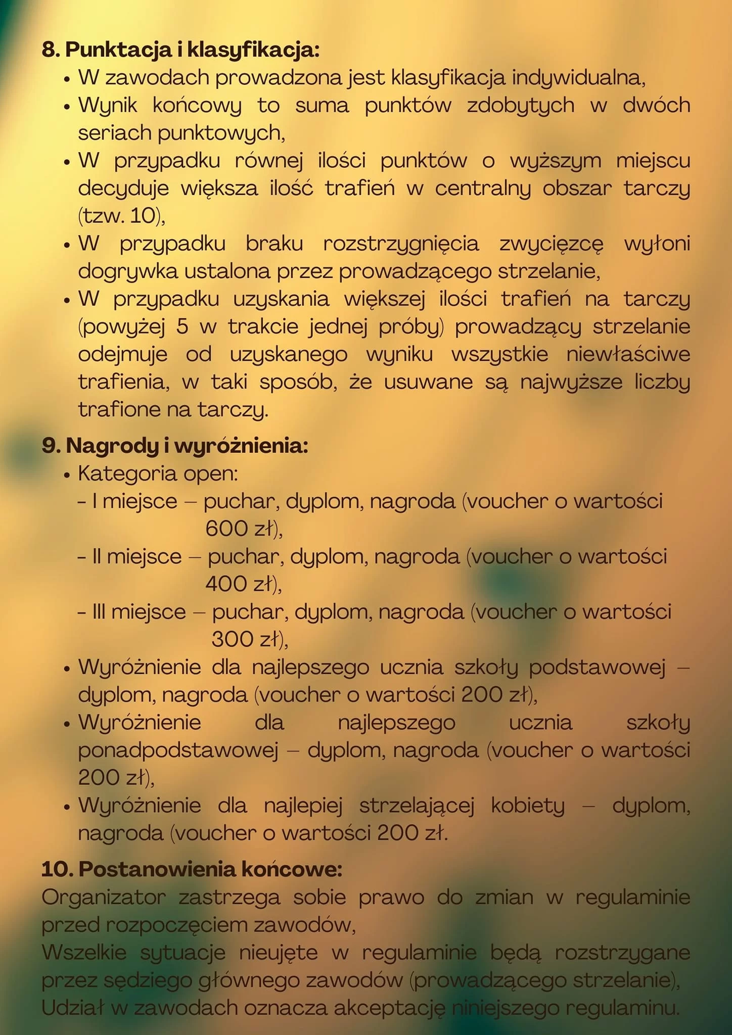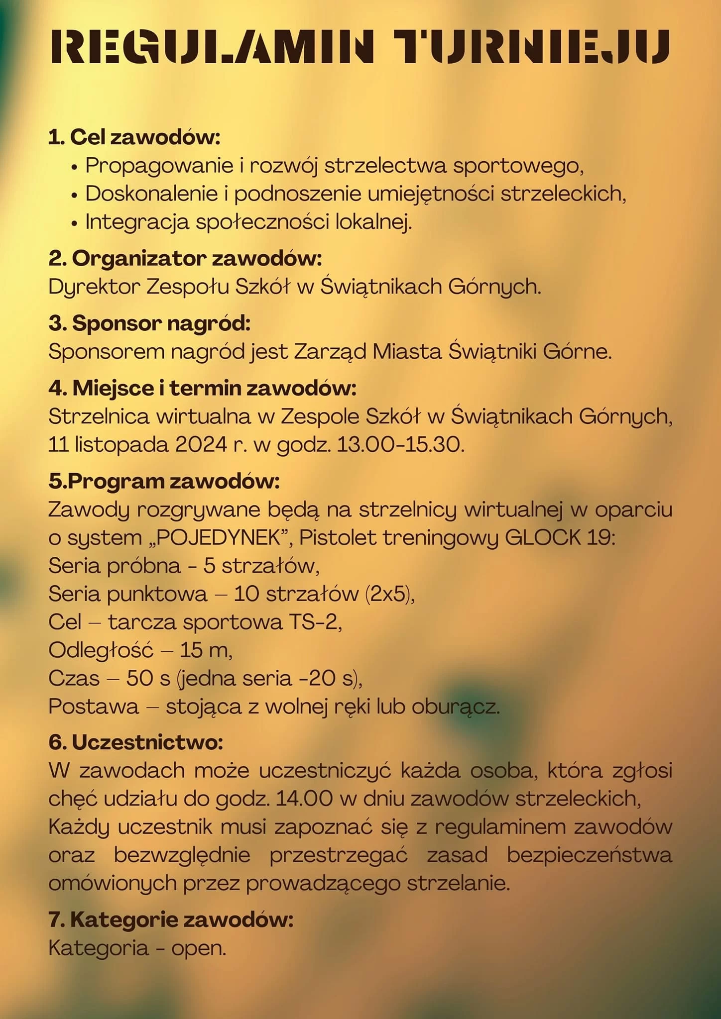 Regulamin turnieju strzeleckiego dostępny w załączeniu.