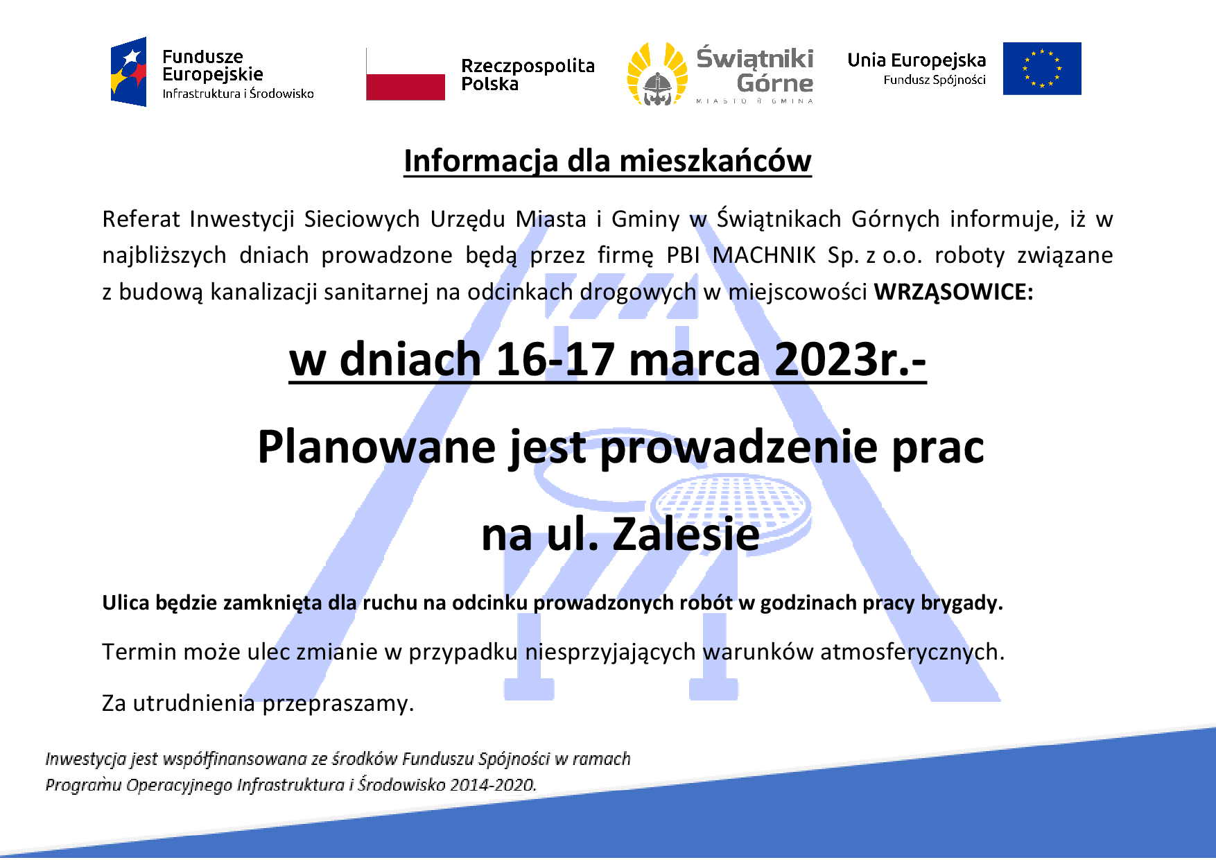 Budowa kanalizacji sanitarnej- prace budowlane na ul. Zalesie we Wrząsowicach