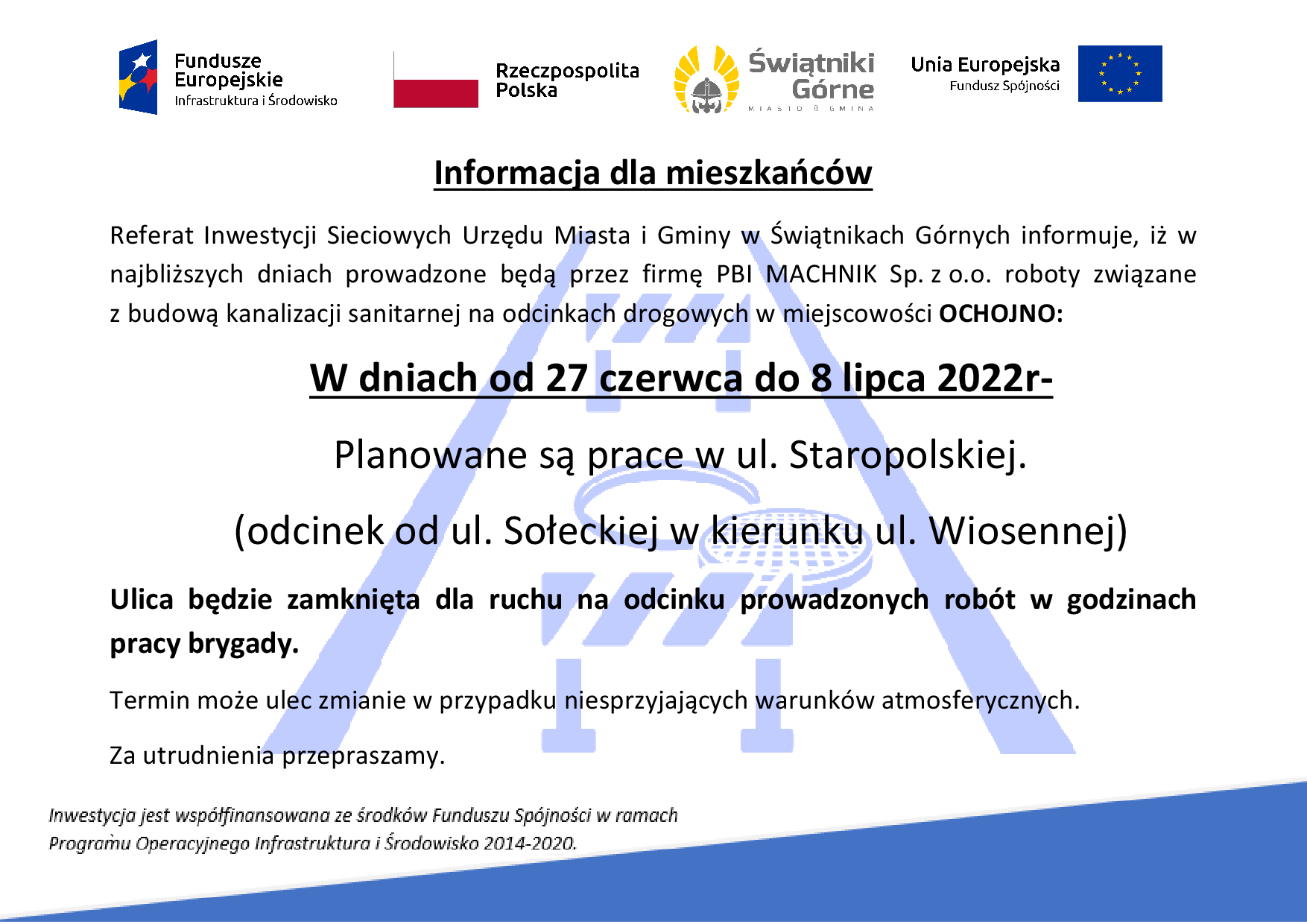 Budowa kanalizacji sanitarnej- prace w ul. Staropolskiej w Ochojnie
