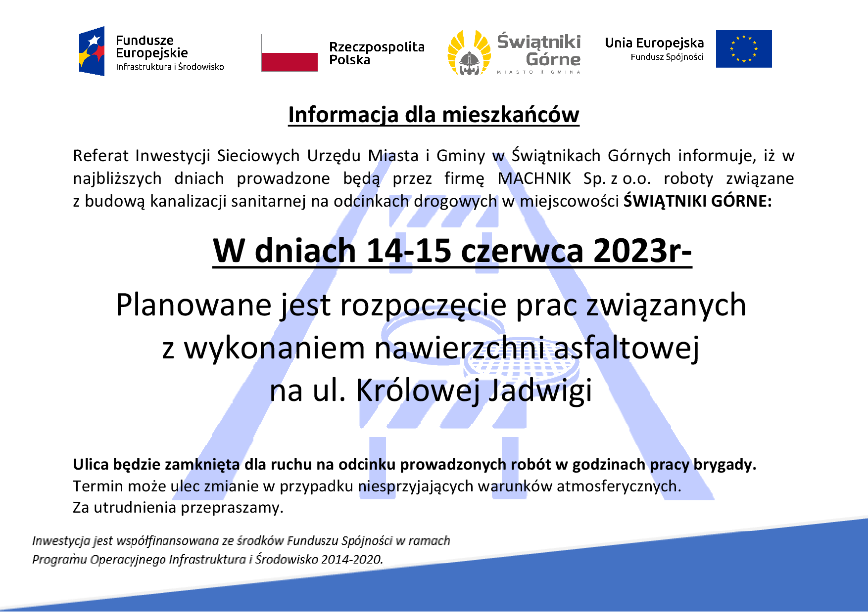 Budowa kanalizacji sanitarnej-rozpoczęcie prac związanych z wykonaniem nawierzchni asfaltowej na ul. Królowej Jadwigi w Świątnikach Górnych