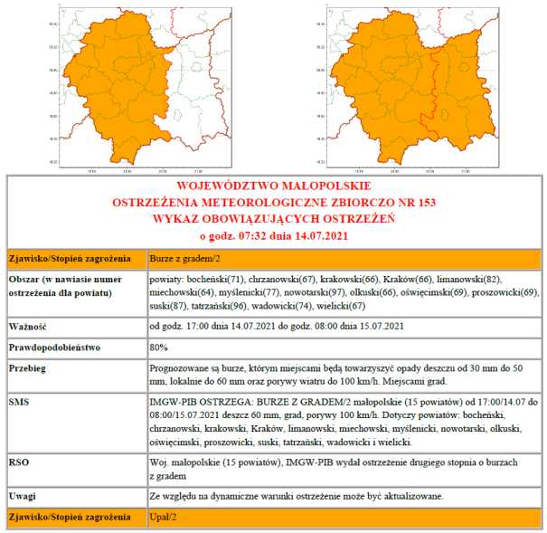 Ostrzeżenie meteorologiczne nr 153 i Ostrzeżenie hydrologiczne nr O_91