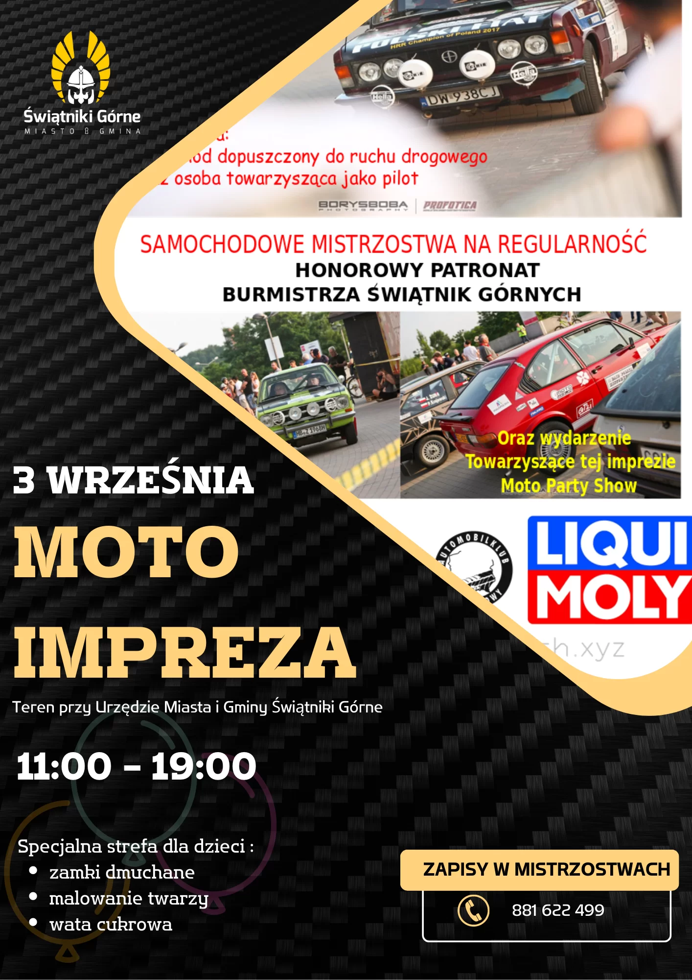 3 września (niedziela) 𝓜𝓸𝓽𝓸 𝓲𝓶𝓹𝓻𝓮𝔃𝓪 - samochodowe mistrzostwa na regularność - moto party show - strefa dla dzieci z OSP KSRG Świątniki Górne Obecność obowiązkowa!