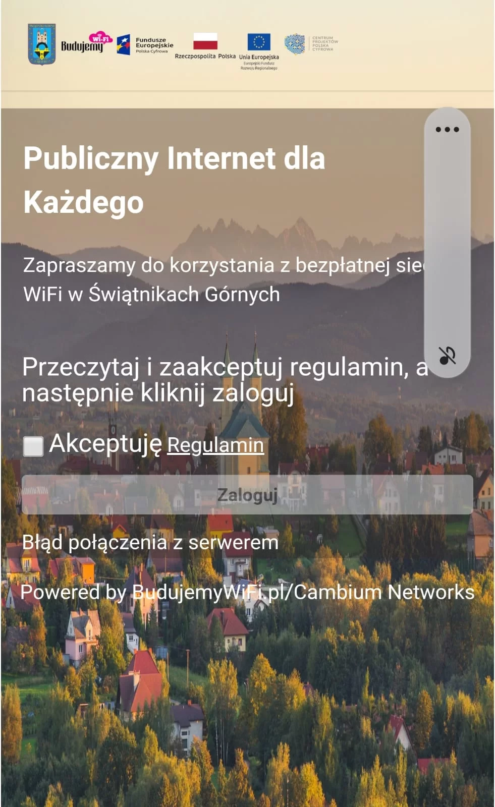 Aby zalogować się do sieci kliknij ikonę WiFi w telefonie, wybierz sieć „Publiczny Internet dla Każdego", a następnie zaloguj się do sieci.