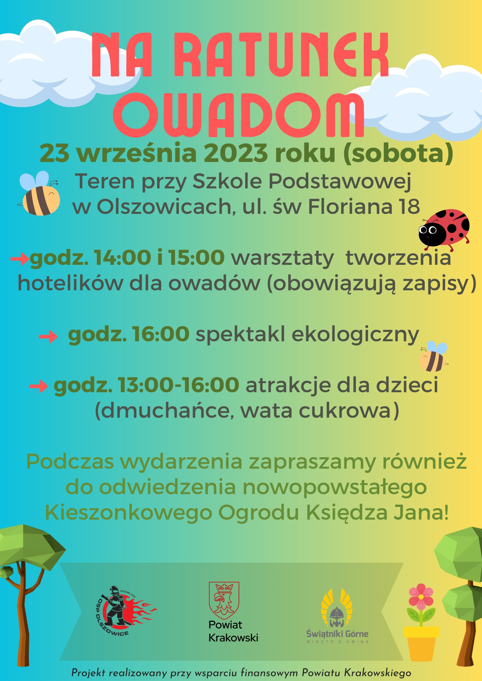 godz. 14:00 i 15:00 warsztaty tworzenia hotelików dla owadów (obowiązują zapisy)