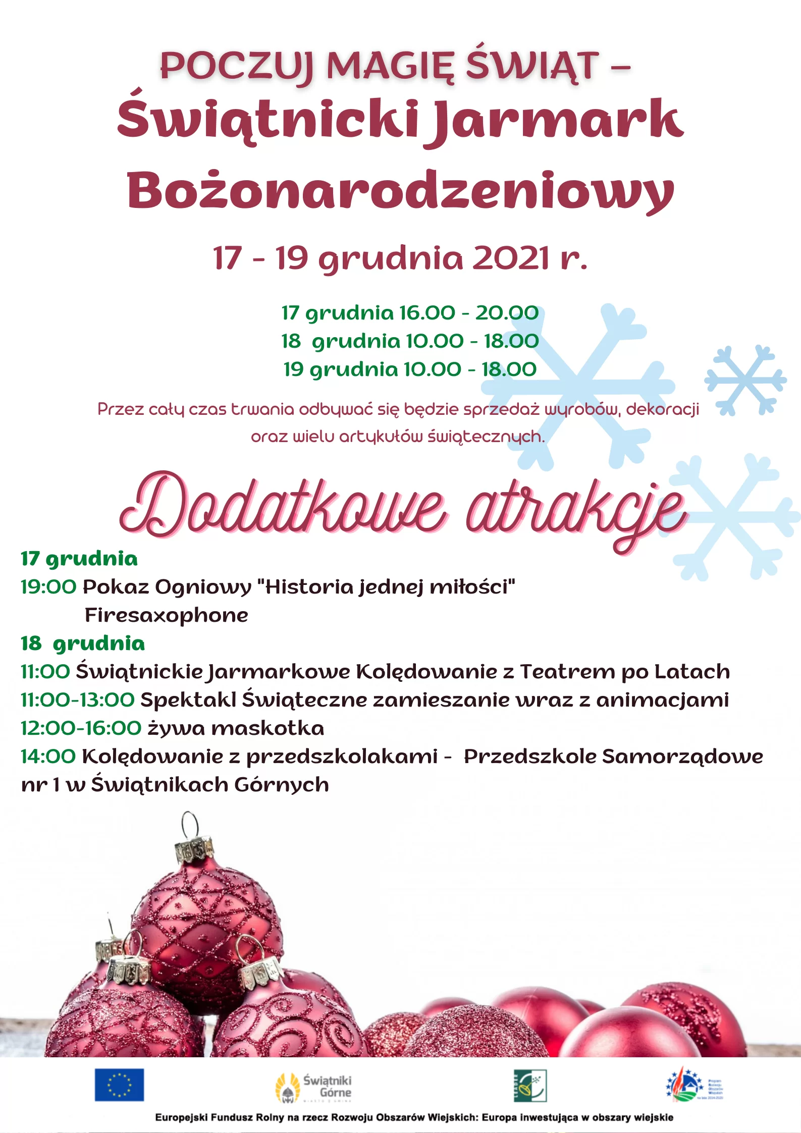 Wydarzenie realizowane w ramach projektu „Spacer śladami Gminy Świątniki Górne” wydanie mapy terenu Gminy Świątniki Górne oraz impreza plenerowa „Poczuj magię świąt – Świątnicki Jarmark Bożonarodzeniowy”